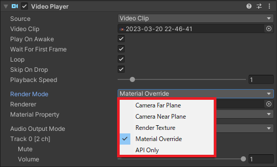 再生される動画は Material の影響を受けます。